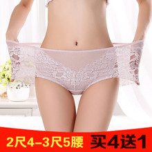 加肥加大码高腰性感蕾丝女胖MM纯棉底裆200斤提臀三角内裤青年