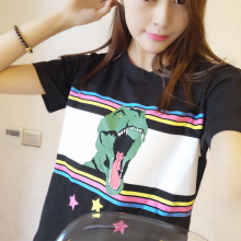 花儿与少年3同款彩虹星星条纹恐龙印花纯棉宽松短袖T恤女情侣装