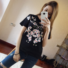 2017夏装新款蓝色字母亮片刺绣圆领白色休闲纯棉宽松短袖T恤女潮