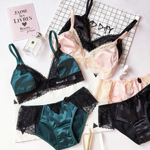 赫萌莎超薄蕾丝真丝缎面无钢圈比基尼三角杯欧美性感文胸内衣套装