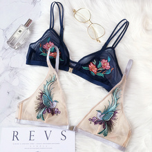 赫萌莎bralette欧美刺绣网纱无钢圈超薄性感前扣三角杯文胸内衣
