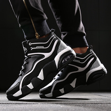 冬季休闲高帮板鞋男士减震耐磨运动鞋子男跑步潮流男鞋黑白透气