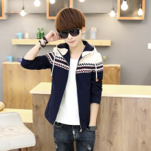 秋季男装夹克衫青少年薄款翻领连帽外套学生外衣服外穿男士上衣潮