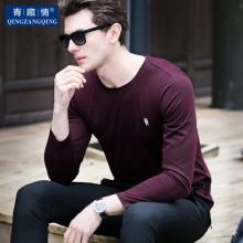 春季男装中年薄款纯色男士长袖丝光棉t恤圆领 修身大码打底衫男