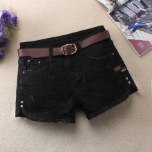 2017春季新款热销显瘦时尚翻边黑色牛仔短裤女学生靴裤宽松大码