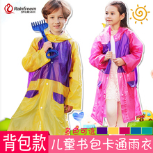 琴飞曼 长款儿童雨衣 可爱卡通儿童雨披 带书包位学生雨衣
