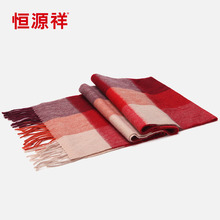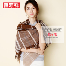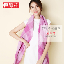 恒源祥包邮秋冬季新款商务OL休闲格子长款女士羊毛围巾围脖披肩