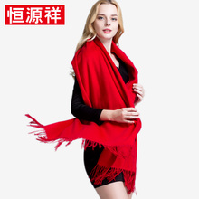 恒源祥春秋冬季新款女士围巾羊毛大披肩加厚两用纯色长款围脖保暖