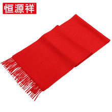 恒源祥秋冬季羊毛纯色保暖多色双面大红长款男女围脖加厚百搭围巾