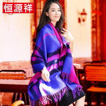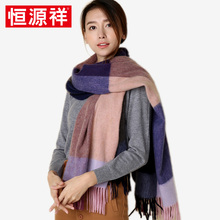 恒源祥新款双面羊毛围巾披肩两用女加厚长款格子超大保暖冬季围脖