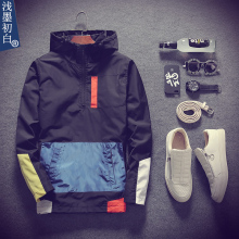 夹克男 秋季男装修身型连帽套头棒球衫潮流男士夹克薄外套秋衣服