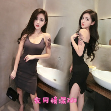 2017夏装新款夜店女装性感吊带露背气质修身包臀开叉长裙连衣裙潮