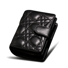 Ouliss2017新款潮夏韩版拉链羊皮女短款钱包 真皮菱格车缝线钱夹