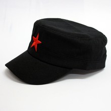 包邮红军帽五角星刺绣纯棉平顶帽子军帽棒球黑色平顶棒球帽