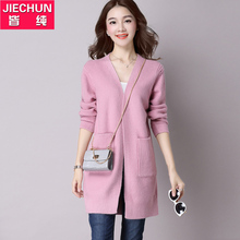 皆纯2016秋装新款外套女韩版休闲针织衫女中长款大码显瘦外衣