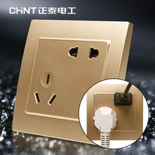 正泰开关插座香槟金色五孔插座面板 86型NEW7L 墙壁电源二三插5孔