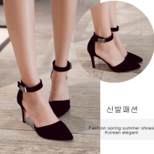 欧美性感高跟鞋细跟尖头鞋5cm绒面 百搭显瘦交叉绑带中跟单凉鞋潮