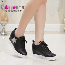 普兰妮2016春休闲鞋女鞋坡跟内增高系带单鞋运动款舒适平底鞋潮鞋