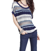 2017春夏上装新品镂空绞花 蝙蝠衫短袖两穿薄宽松针织衫T恤外套女