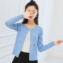 雪米莲新品韩版刺绣针织春季开衫毛衣女长袖圆领休闲小外套上衣