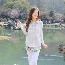 雪米莲2017春装新款韩版女装雪纺内衬打底印花 两件套针织衫