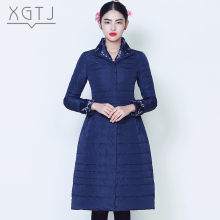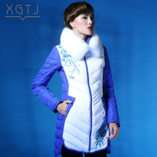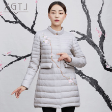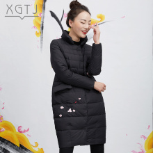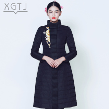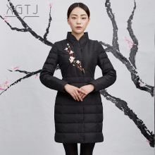 雪国天娇2016新款时尚休闲中国风刺绣立领羽绒服女中长款修身显瘦