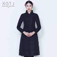 雪国天娇2016新款冬装时尚中国风玉石扣修身显瘦羽绒服女中长款