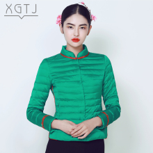 雪国天娇2016新款时尚中国风刺绣拼接小立领轻薄修身羽绒服女短款