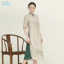 雪国天娇2017夏装款中国风裙子复古修身中长款无袖改良旗袍连衣裙
