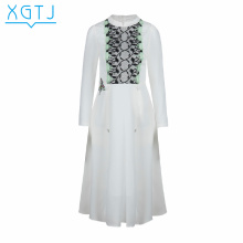 雪国天娇春夏新款中国风长袖裙子蕾丝雪纺拼接长裙复古修身连衣裙