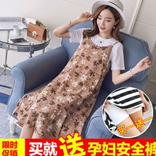 孕妇装夏装2017新款短袖碎花雪纺连衣裙夏季韩版吊带裙两件套长裙