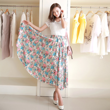 半身裙夏中长裙新女甜美雪纺长裙印花a字裙高腰大摆裙过膝裙