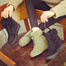 春季保暖女鞋内增高加绒短靴真皮马丁靴英伦风加厚纯羊毛雪地靴女