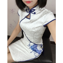 嫣之然正品2017新款旗袍夏装日常改良短款低领修身连衣裙妈妈装qp