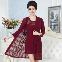 夏季新品中长款开衫外套女妈妈装薄款大码薄披肩两件套中老年套装
