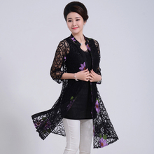 夏季新品开衫女 大码妈妈装中长款镂空防晒衫薄款披肩外套罩衫