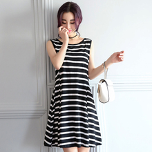大码无袖条纹打底衫 宽松连衣裙女百搭内搭中长款吊带显瘦背心裙