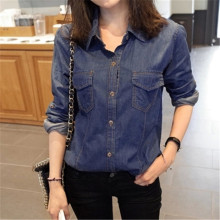 2015秋季韩版新款修身显瘦大码牛仔衬衫女士学生薄款长袖衬衣外套