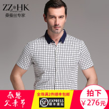 ZZHK桑蚕丝衬衫男短袖格子印花商务中年丝绸衬衣丝光棉免烫上衣夏