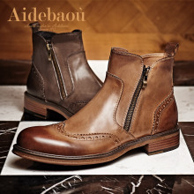爱得堡男士英伦马丁靴复古皮靴男休闲高帮鞋雕花复古短靴男靴
