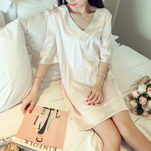 夏季新款家居服欧美风性感仿真丝短袖睡裙休闲高贵奢华优雅睡衣女