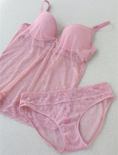 欧美柔软性感蕾丝睡裙女网纱粉色透明诱惑吊带内衣配T裤睡衣套装