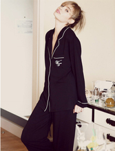 欧美夏季莫代尔长袖睡衣女人睡袍衬衫领睡裙家居服纯棉质睡衣套装