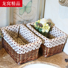 龙窝家居 柳编收纳筐 编织收纳筐 化妆品收纳盒 藤编桌面收纳盒