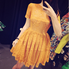 Forevercan2016新品水溶镂空蕾丝 优雅修身 高腰连衣裙女