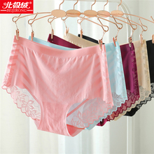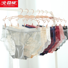 【3条装】北极绒蕾丝内裤女性感透明提臀冰丝纯棉裆少女三角裤头