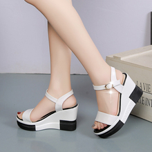 2017春秋款韩版学生魔术贴鱼嘴坡跟凉鞋松糕厚底增高跟镂空女单鞋