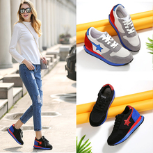 春夏秋新款运动鞋真皮厚底拼色学生星星女鞋内增高休闲鞋透气跑步