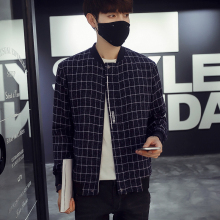 韩国代购2016秋季潮男韩版格子夹克衫男休闲百搭夹克外套男士修身