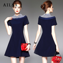 拼接衬衫领连衣裙2017夏季新款女装气质收腰短袖修身显瘦A字裙潮